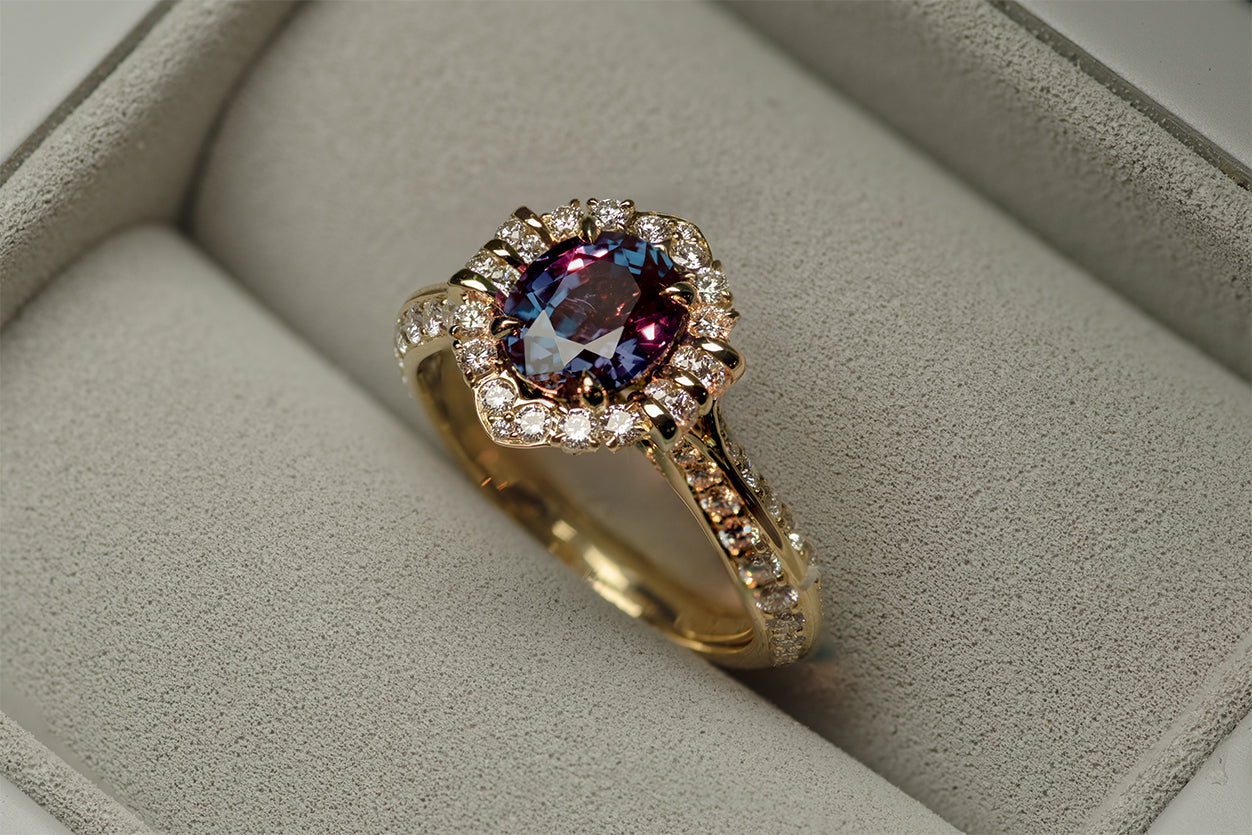 As the name suggests, customised jewellery involves some degree of personalisation: for example, laser engraving letters on a ring band, or selecting an existing design from our ready-to-wear collections and swapping one gemstone for another.