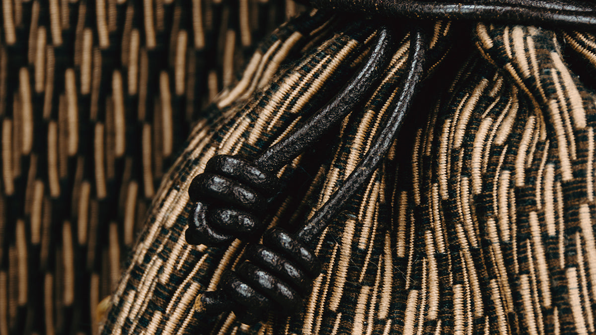 Additionally, creating our own packaging in-house grants us the liberty to design various pouch sizes, allowing for experimentation and refinement. The stylised wheat design of the fabric alongside the leather cord celebrates TVRRINI's adventurous use of materials and colour. This textural weave evokes luxury, attractively matched with a vintage resemblance. As an accessory to your jewellery, it is the perfect finishing touch for any ensemble.